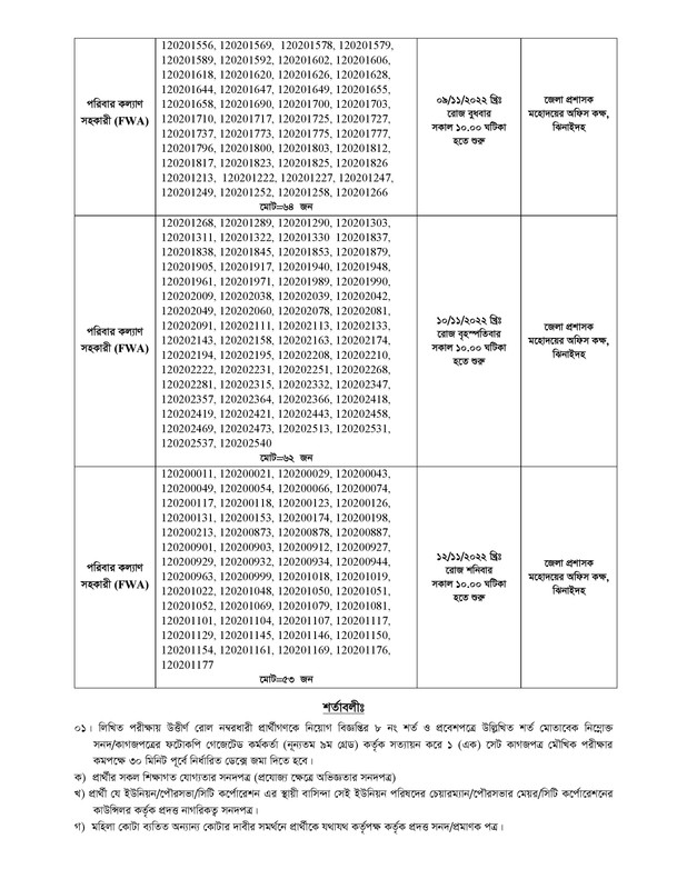 ঝিনাইদহ পরিবার পরিকল্পনা কার্যালয় মৌখিক পরীক্ষা শর্তাবলীঃ