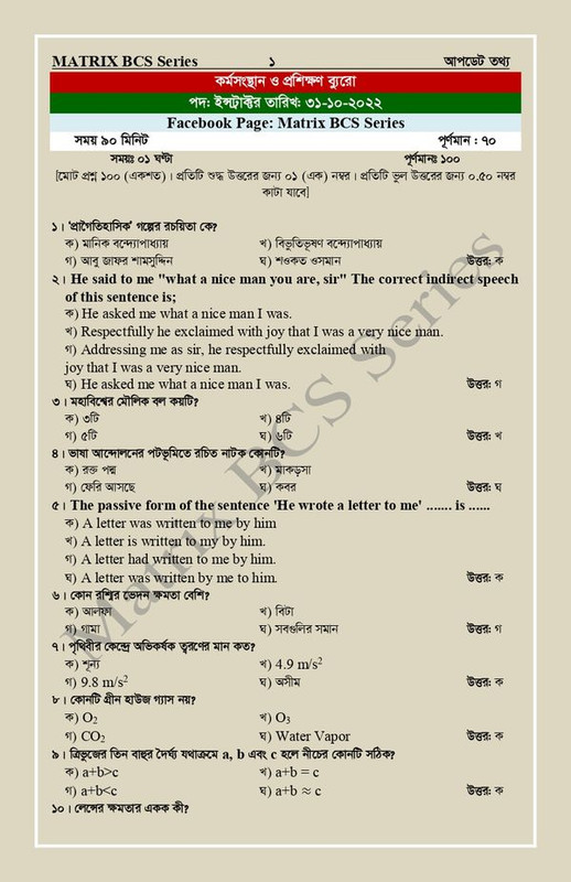 । পূর্ণমান: ১০০। সময়: ১ ঘন্টা। পরীক্ষার তারিখ: ৩১-১০-২০২২। কর্মসংস্থান ও প্রশিক্ষণ ব্যুরো নিয়োগ পরীক্ষা প্রশ্ন সমাধান ২০২২।