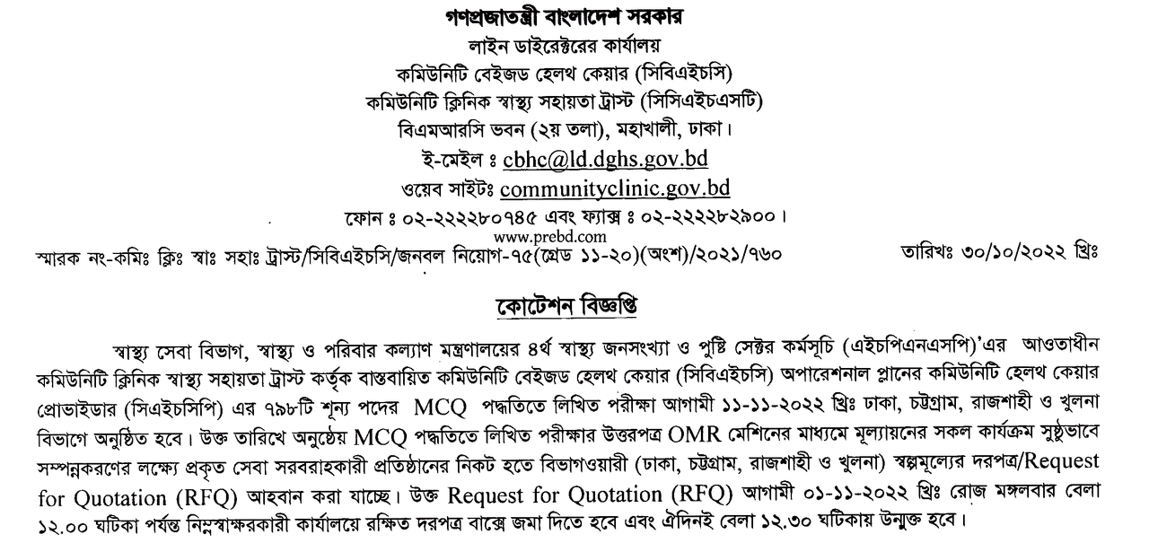 Community Clinic Admit Card: cbhc.teletalk.com.bd
