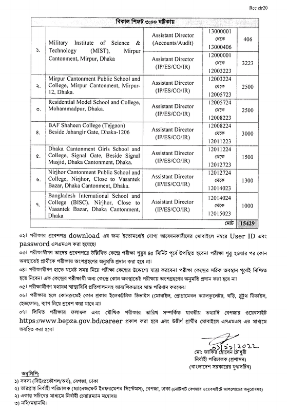 07. All the information related to the written test results and oral test date will be published on the Bepza website https://www.bepza.gov.bd/career and will be notified through SMS on the mobile of the successful candidate.