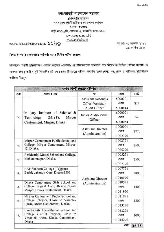 bepza Seat Plan 2022 – bepza.teletalk.com.bd, Bangladesh Export Processing Area Authority (BEPZA) written examination for recruitment to the post of revenue department officer will be held on 04 November 2022 in two shifts at a total of 07 (seven) centers. Centers, Posts, Rolls, and Exam Schedule wise The list is as follows.