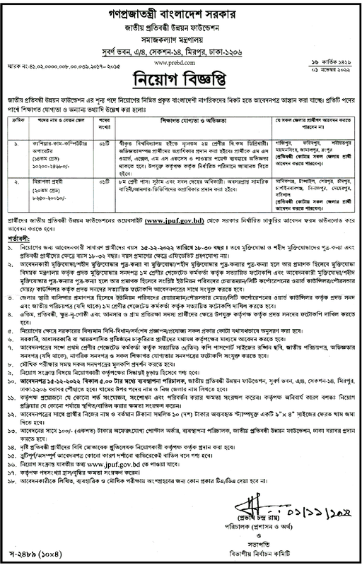 প্রার্থীদের জাতীয় প্রতিবন্ধী উন্নয়ন ফাউন্ডেশনের ওয়েবসাইট (www.jpuf.gov.bd) থেকে সরকার নির্ধারিত চাকুরির আবেদন ফরম ডাউনলোড করে আবেদন করতে হবে।