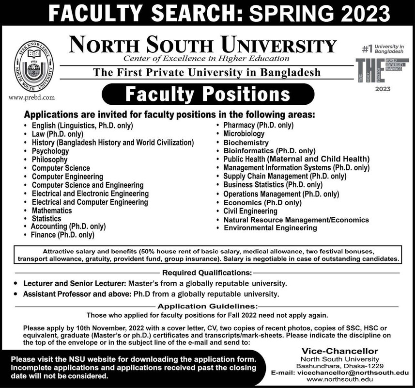 Please visit the NSU website for downloading the application form. Incomplete applications and applications received past the closing date will not be considered.