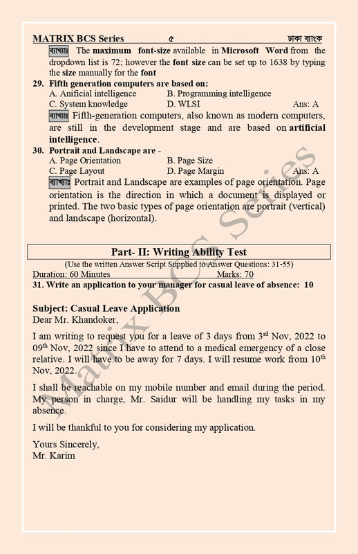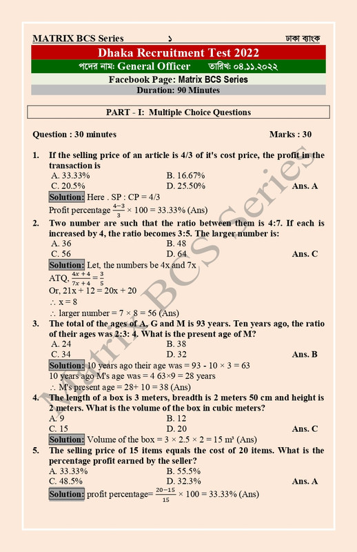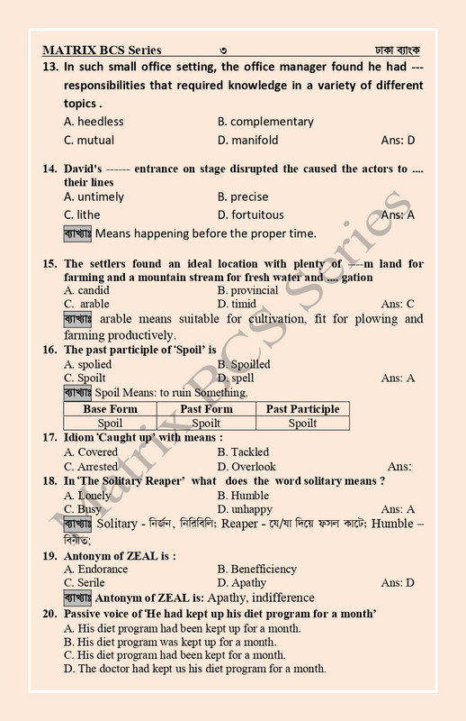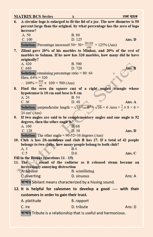 Dhaka Bank Question solution 2022