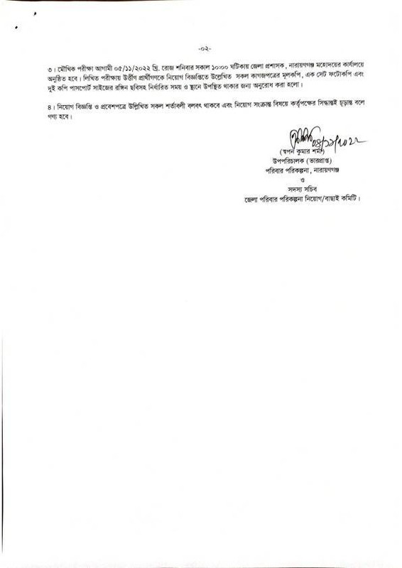 ৩। মৌখিক পরীক্ষা আগামী ০৫/১১/২০২২ খ্রি. রোজ শনিবার সকাল ১০:০০ ঘটিকায় জেলা প্রশাসক, নারায়ণগঞ্জ মহোদয়ের কার্যালয়ে