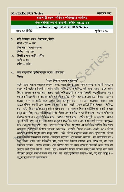 Rangpur Family Planning Question Solution 2022 – রংপুর পরিবার পরিকল্পনা পরীক্ষার প্রশ্ন সমাধান