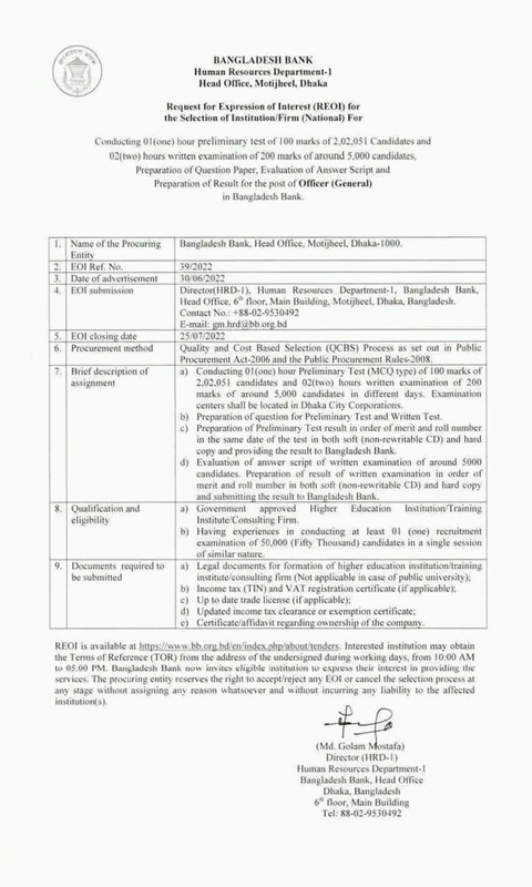 Bangladesh bank officer general exam date 2022. Circular regarding date and time of preliminary test (MCQ Type) for the post of ‘Officer (General)’ of Bangladesh Bank. To be held for the purpose of appointment to the post of ‘Officer (General)’ in Bangladesh Bank Notification regarding the schedule of Preliminary Test (MCQ Type).