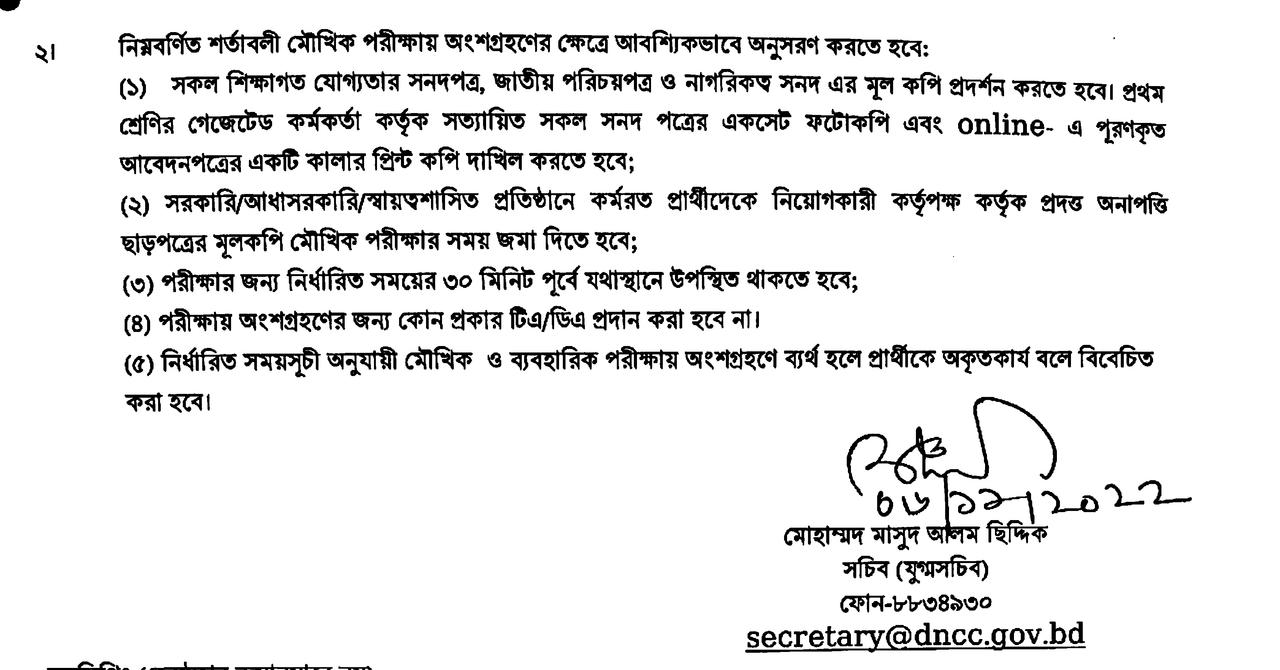 ঢাকা উত্তর সিটি কর্পোরেশন (DNCC) মৌখিক ও ব্যবহারিক পরীক্ষার সময়সূচী ২০২২