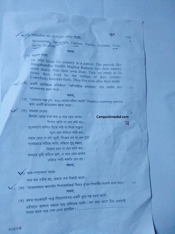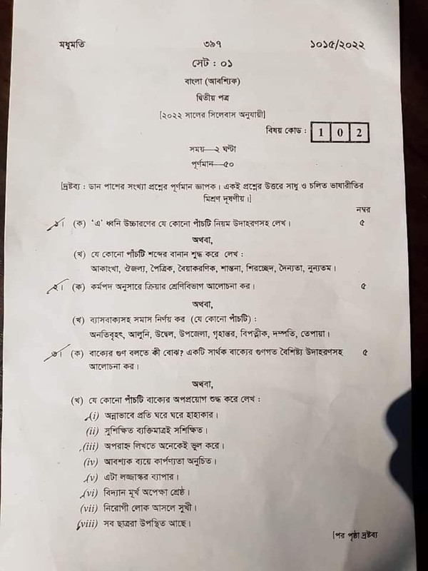 Dhaka Board HSC Board Bangla 2nd Paper Board Question 2022