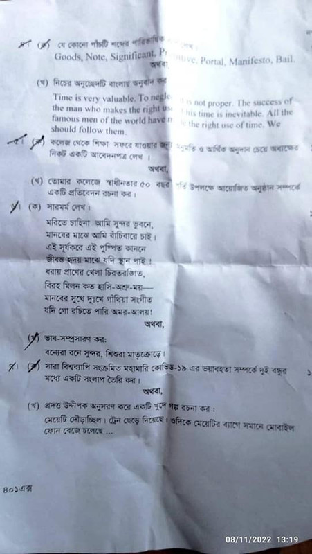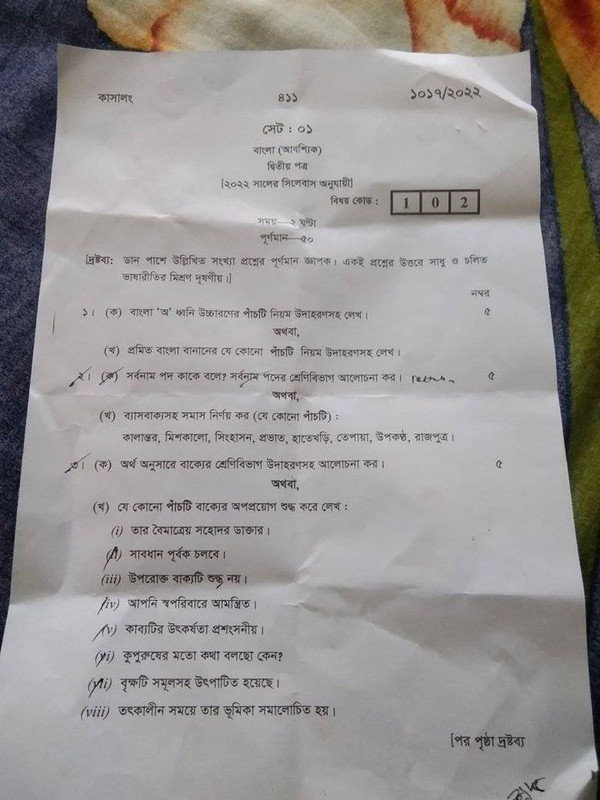 Cumilla Board HSC Board Bangla 2nd Paper Board Question 2022