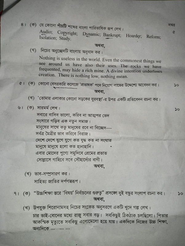 Jessore Board HSC Board Bangla 2nd Paper Board Question 2022