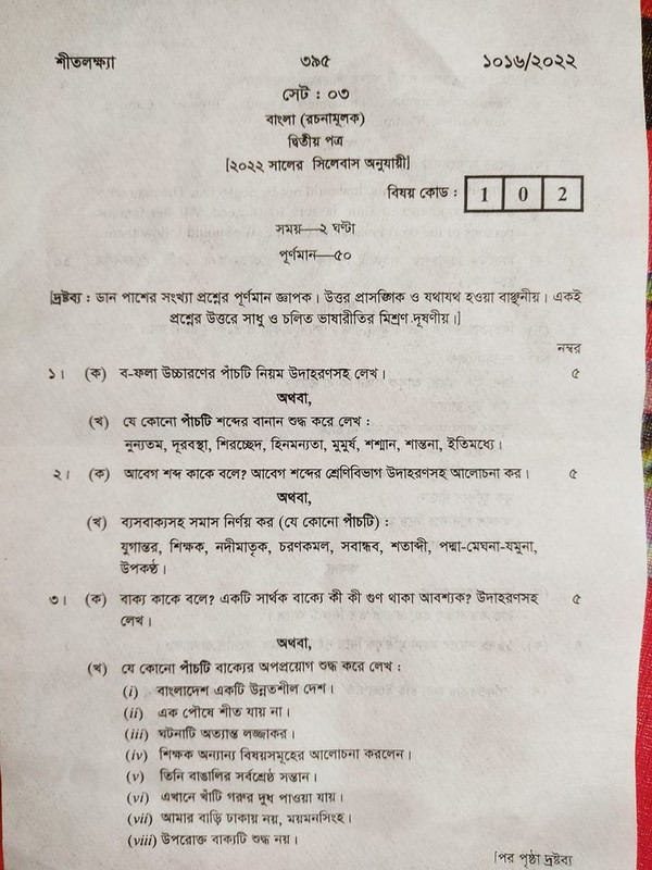 Chittagong Board HSC Board Bangla 2nd Paper Board Question 2022
