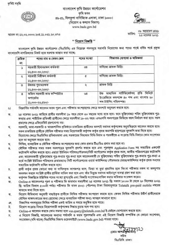 See badc Job Circular 2022 – badc.teletalk.com.bd apply