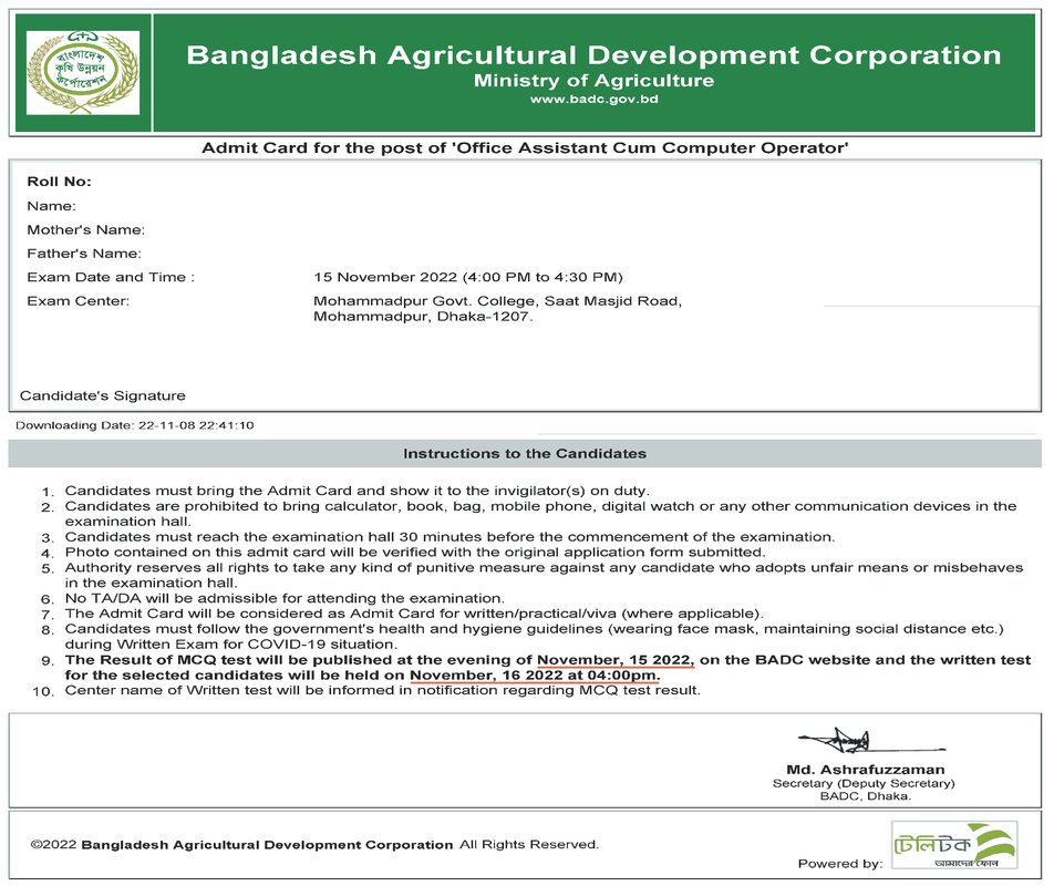 Download BADC Admit Card Now: http://badc.teletalk.com.bd