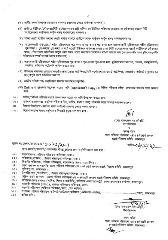 পরিবার পরিকল্পনা কার্যালয়, জামালপুর মৌখিক পরীক্ষার শর্তাবলী: