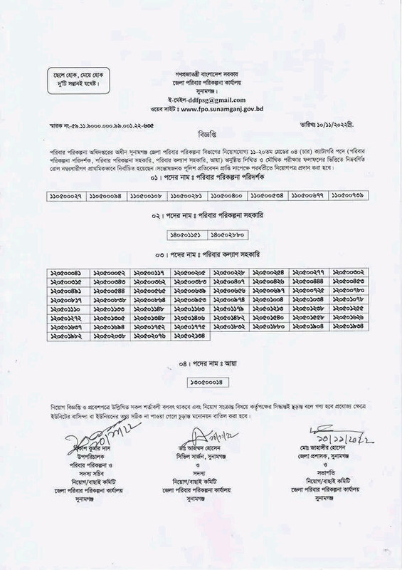 সুনামগঞ্জ জেলা পরিবার পরিকল্পনা কার্যালয় চূড়ান্ত ফলাফল ২০২২ – Dgfp Sunamganj Final Result