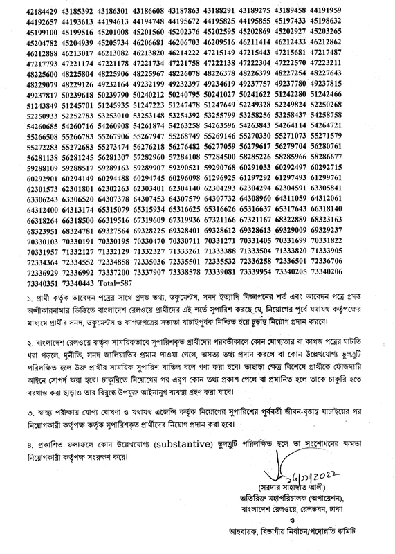 1. Based on the information, documents, certificates, etc. provided by the candidate along with the application form, the conditions of advertisement, and the undertaking given in the application form, Bangladesh Railway recommends the candidates on the condition that prior to the appointment, the appropriate authorities Through verification of the authenticity of the candidate’s certificates, documents and papers, the final appointment will be made.