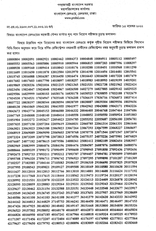 Bangladesh Railway Assistant Station Master Vacancy Recruitment Exam Final Result. Bangladesh Railway Assistant Station Master Vacancy Recruitment Exam Final Result. The final result of the registration number of the candidates having the registration number mentioned below is published on the basis of the recruitment test conducted by Bangladesh Railway for the appointment of the mentioned posts.