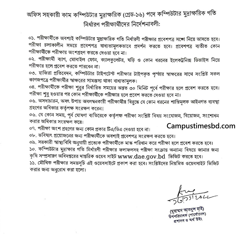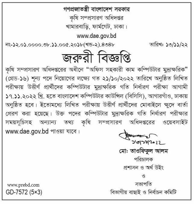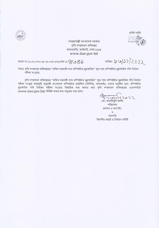 কৃষি সম্প্রসারণ অধিদপ্তরের কম্পিউটার টাইপিং গতি পরীক্ষার সময়সূচি ২০২২ পিডিএফ