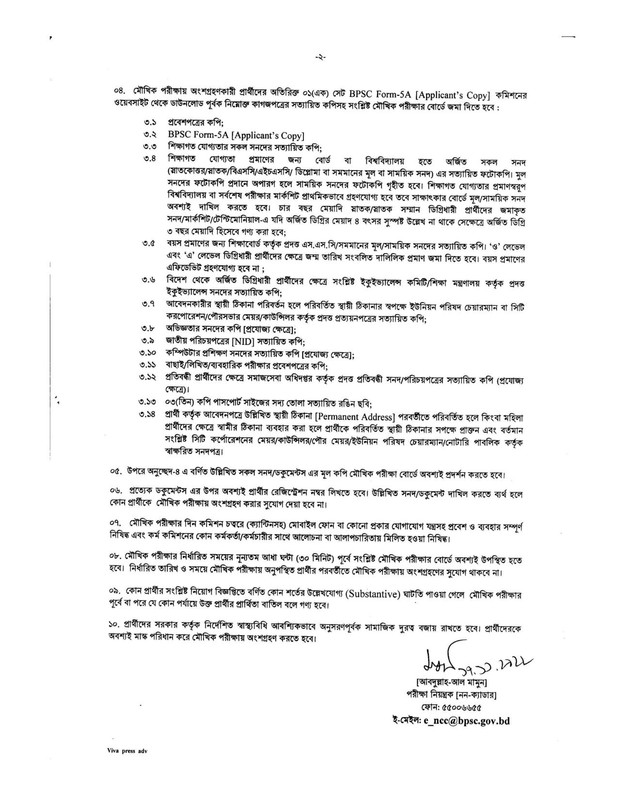 নৌপরিবহন মন্ত্রণালয়ের অধীন বাংলাদেশ মেরিন একাডেমি, চট্টগ্রাম এর ‘ইঞ্জিনিয়ারিং মেকানিক [উপসহকারী প্রকৌশলী] [১০ম গ্রেড] পদের প্রার্থীদের মৌখিক পরীক্ষার সময়সূচি। সংশ্লিষ্ট সকলের অবগতির জন্য জানানো যাচ্ছে যে, নৌপরিবহন মন্ত্রণালয়ের অধীন বাংলাদেশ মেরিন একাডেমি, চট্টগ্রাম এর ‘ইঞ্জিনিয়ারিং মেকানিক [উপসহকারী প্রকৌশলী]’ [১০ম গ্রেড] এর ০১ টি স্থায়ী শূন্য পদে সরাসরি নিয়োগের জন্য ০৯.১২.২০১৯ তারিখে অনলাইনে বিজ্ঞপ্তির ক্রমিক নং- ১২৬ জারি করা হয়। উক্ত পদের লিখিত পরীক্ষায় উত্তীর্ণ প্রার্থীদের মধ্যে BPSC Form-5A [Applicant’s Copy] জমাদানকারী সাময়িকভাবে যোগ্য প্রার্থীদের মৌখিক পরীক্ষা নিম্নোক্ত সময়সূচি অনুযায়ী বাংলাদেশ সরকারী কর্ম কমিশন সচিবালয়, আগারগাঁও, শেরেবাংলা নগর, ঢাকায় অনুষ্ঠিত হবে।