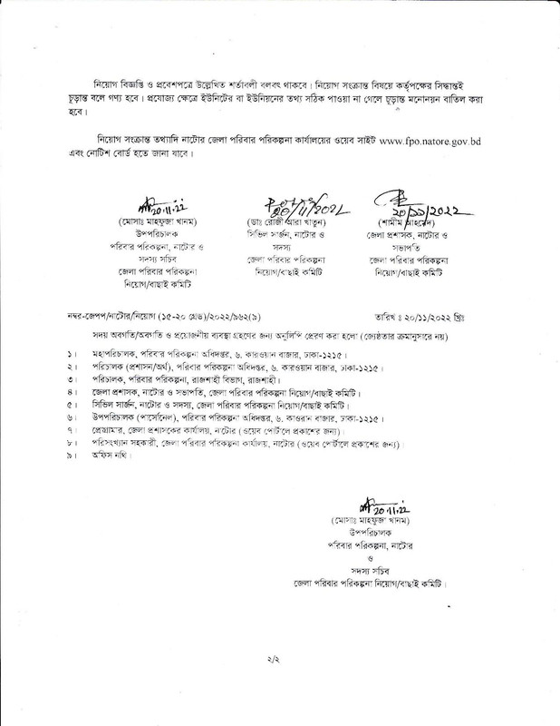 নাটোর জেলা পরিবার পরিকল্পনা পরীক্ষার চূড়ান্ত ফলাফল ২০২২ – dgfp natore Final Results