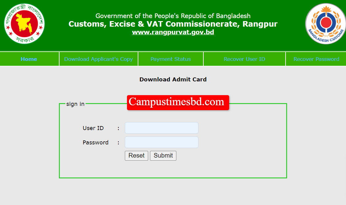 rangpur vat Admit Download Link: rangpurvat.teletalk.com.bd