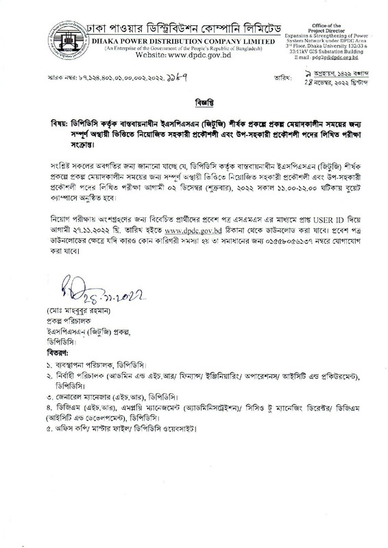 ঢাকা পাওয়ার ডিস্ট্রিবিউশন কোম্পানি লিখিত পরীক্ষার সময়সূচি ২০২২