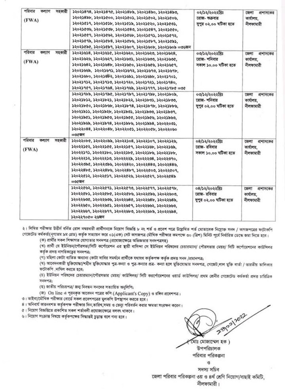 নীলফামারী জেলা পরিবার পরিকল্পনা মৌখিক পরীক্ষা – DGFP nilphamari Viva