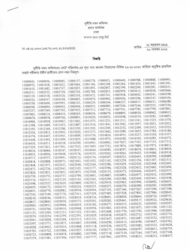 Special Note: Do not bribe anyone in Anti-Corruption Commission Recruitment Exam. Don’t be fooled by anyone. If someone asks for a bribe, report it to the ACC Complaint Center 106 immediately. This recruitment is being held with 100% honesty and transparency.