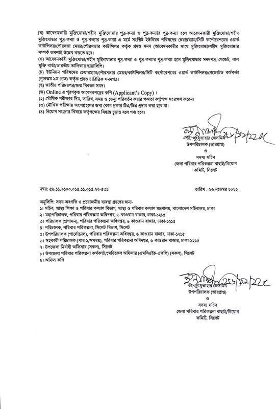 সিলেট জেলা পরিবার পরিকল্পনা কার্যালয় মৌখিক পরীক্ষা ২০২২ – DGFP sylhet Viva