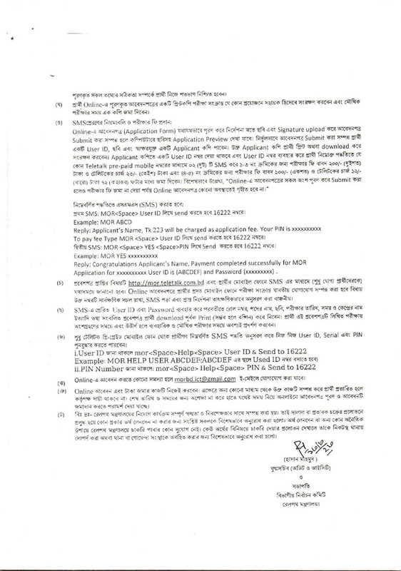 আবেদন লিংকঃ http://mor.teletalk.com.bd