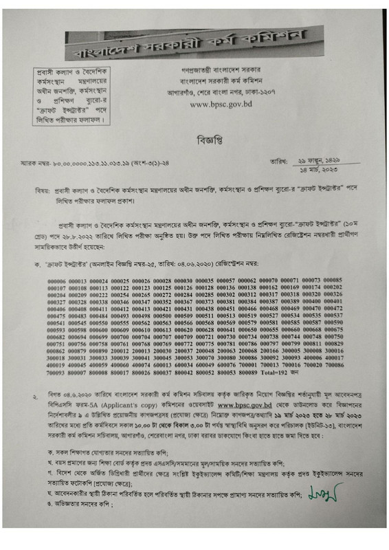 ৫. উল্লিখিত প্রার্থীদের মৌখিক পরীক্ষার তারিখ, স্থান ও সময়সূচি পরবর্তীতে কর্ম কমিশনের ওয়েবসাইটসহ জাতীয় দৈনিক পত্রিকার মাধ্যমে জানানো হবে।