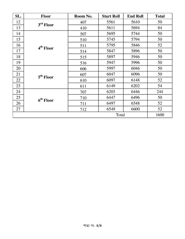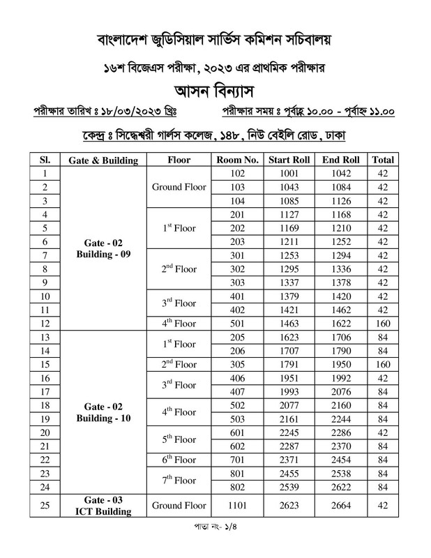 16th BJS Seat Plan 2023 – ১৬তম বিজেএস পরীক্ষার আসনবিন্যাস