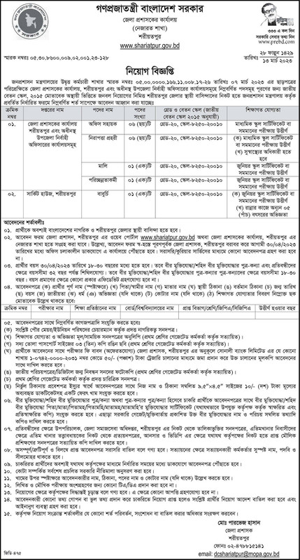 শরীয়তপুর জেলা প্রশাসকের কার্যালয় ও সার্কিট হাউস নিয়োগ বিজ্ঞপ্তি ২০২৩