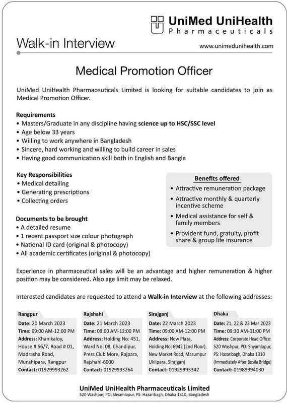 ইউনিমেড ইউনিহেলথ ফার্মাসিউটিক্যালস লিমিটেড নিয়োগ বিজ্ঞপ্তি ২০২৩