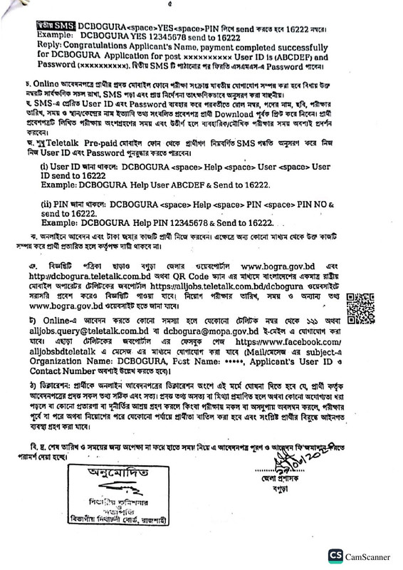 বিজ্ঞপ্তিটি পত্রিকা ছাড়াও বগুড়া জেলার ওয়েবপোর্টাল www.bogra.gov.bd এবং http://dcbogura teletalk.com.bd অথবা QR Code স্ক্যান এর মাধ্যমে বাংলাদেশের একমাত্র রাষ্ট্রীয় মোবাইল অপারেটর টেলিটকের জবপোর্টাল ওয়েবসাইটে সরাসরি প্রবেশ করেও বিজ্ঞপ্তিটি পাওয়া যাবে। নিয়োগ পরীক্ষার তারিখ, সময় অন্যান্য তথ্য www.bogra.gov.bd ওয়েবসাইট হতে জানা যাবে।