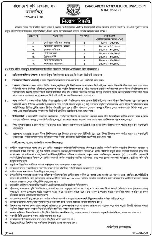 বাংলাদেশ কৃষি বিশ্ববিদ্যালয় নিয়োগ বিজ্ঞপ্তি ২০২৩