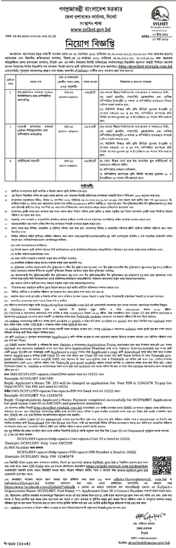 সিলেট জেলা প্রশাসক কার্যালয় নিয়োগ বিজ্ঞপ্তি ২০২৩