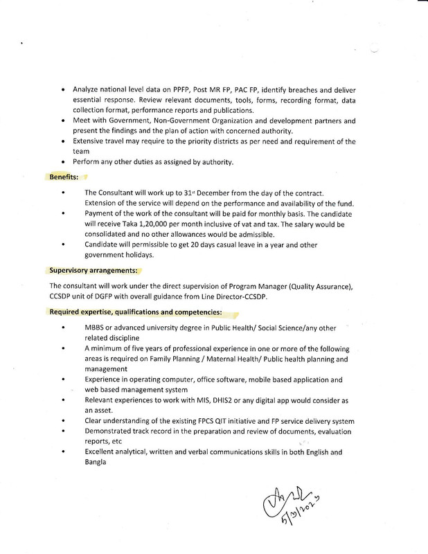 পরিবার পরিকল্পনা অধিদপ্তর National Consultant পদে নিয়োগ বিজ্ঞপ্তি ২০২৩