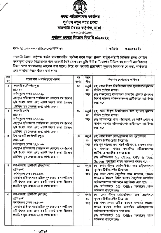 পূর্বাচল নতুন শহর প্রকল্পে জনবল নিয়োগ বিজ্ঞপ্তি ২০২৩