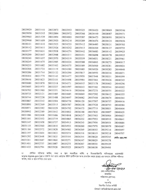 Department of Nursing and Midwifery Office Assistant Exam Result 2023 Result of the Written Examination for the post of Office Assistant (Post Code-280) held on 24 March 2023. In the written examination for the post of Office Assistant held on 24th March 2023, the candidates having the roll number mentioned below have been selected for the oral examination. A total of 556 candidates have passed the office assistant exam. Candidates will be informed about the schedule of the oral examination later. The date and time venue of the oral examination will be published later on the website of the Department of Nursing and Midwifery at www.dgnm.gov.bd. Besides, the successful candidates will be informed about the date, time, and venue of the oral examination through SMS on their respective mobile numbers.