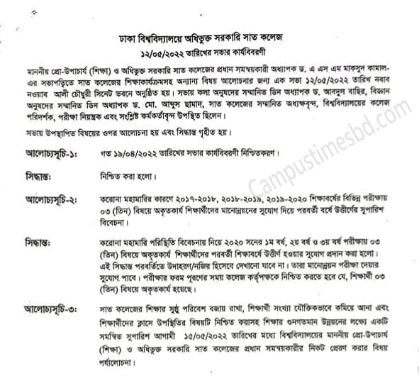 আরও পড়ুনঃ সাত কলেজ অনার্স ১ম বর্ষ থেকে ৪র্থ বর্ষে প্রমোশনের শর্তাবলী