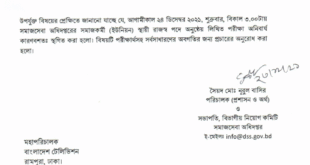 Read More »সমাজসেবা অধিদপ্তরের সমাজকর্মী (ইউনিয়ন) পদের পরীক্ষা স্থগিতকরণ